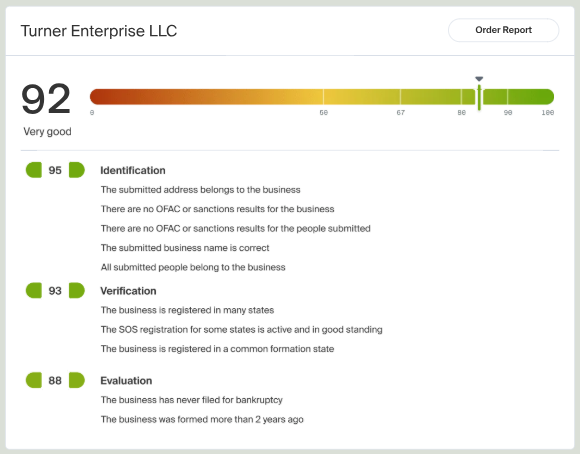 - Onboarding risk decisioning: Get the risk signals you need to make immediate business onboarding decisions.