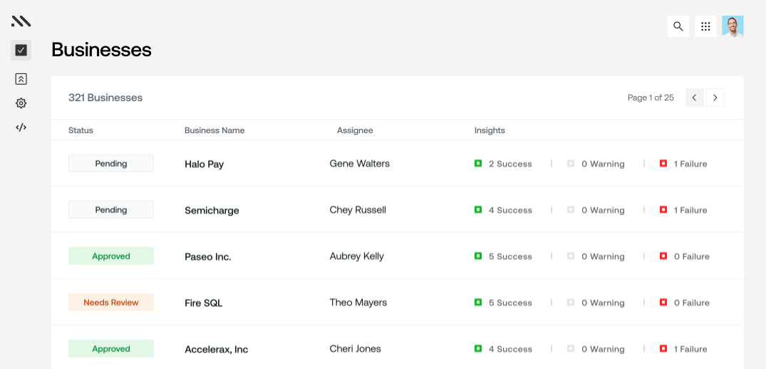 There are a few different ways you can automate certain KYB verification processes: namely, those related to data gathering, data verification, and risk assessment. Generally, the more your KYB software can automate, the smoother your operations will be.