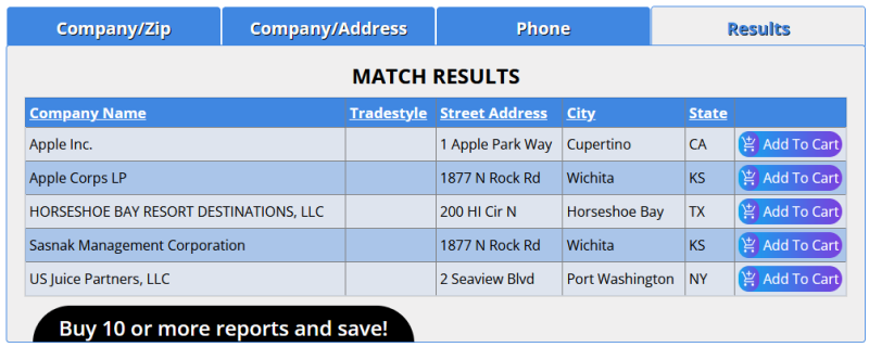 However, as you can only run one search at a time, this is an inefficient way to look up company information if you need to do it on a large scale.