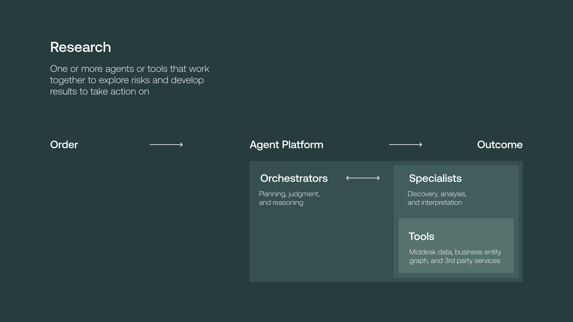 As business decisioning evolves, we're evolving how Middesk intelligence reaches you and what it can do. The business identity platform of the future isn't just data and insights waiting for interpretation. It's infrastructure that investigates on your behalf, delivers decisions instead of alerts, and integrates seamlessly into how you already work.