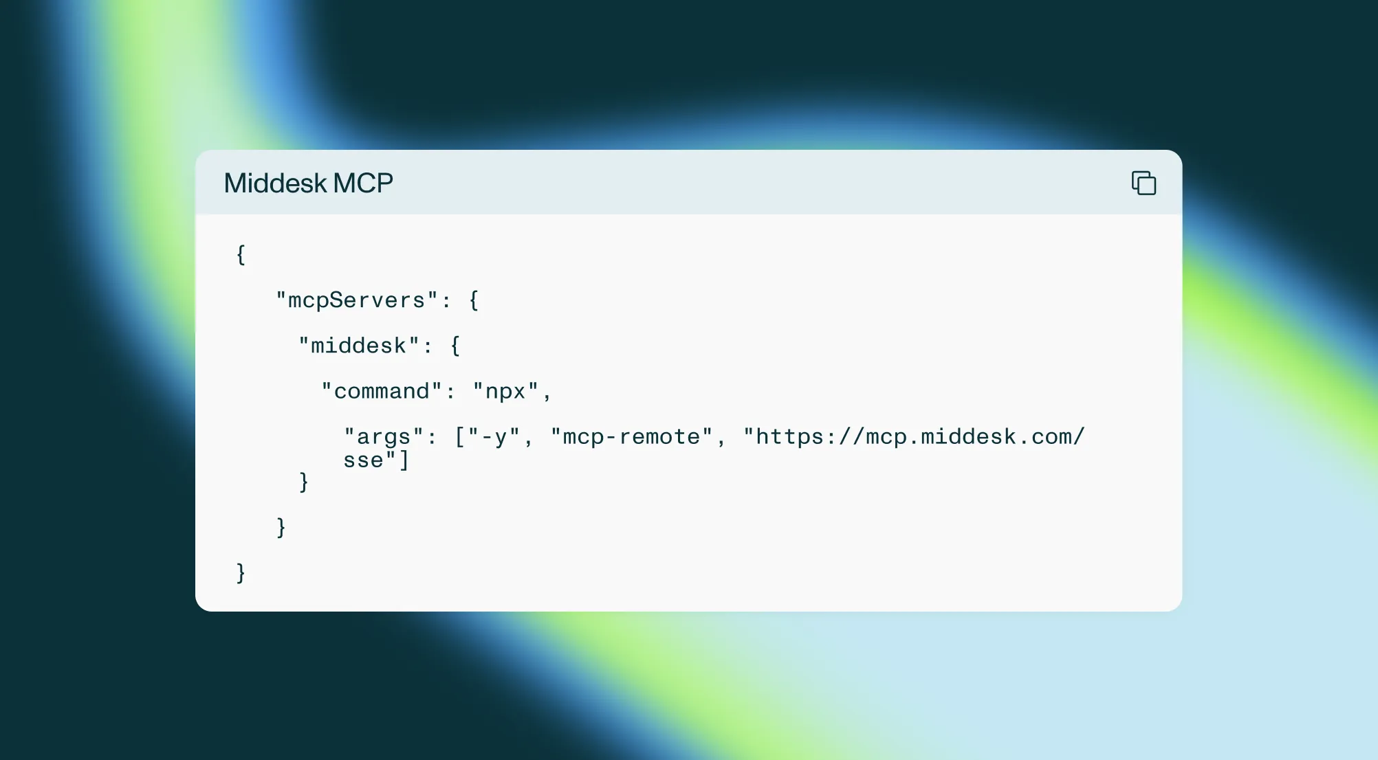 Once approved, you'll receive instructions for installing the MCP server and configuring it with your AI agent. MCP-compatible agents like Claude and Cursor can then discover and use Middesk's verification capabilities automatically.